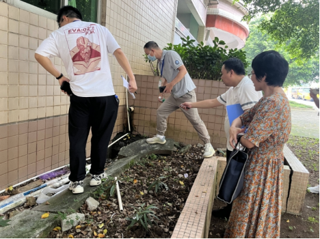会后,稽查部、环境与学校卫生部相关人员在江门中港英文学校领导的陪同下对该校开展学校登革热和基孔肯雅热防控工作检查。针对检查发现的问题,学校马上安排人员落实整改,有效解决学校蚊媒孳生地问题,为师生复学保驾护航。