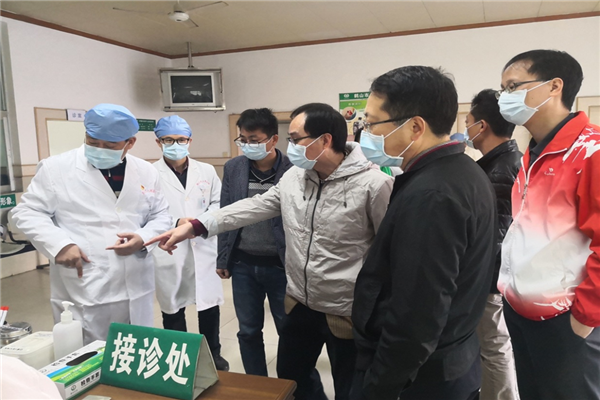 图2. 中心党委书记、主任杨立峰同志(左四)和中心副主任郑南才(右三)到基层指导疫情防控工作