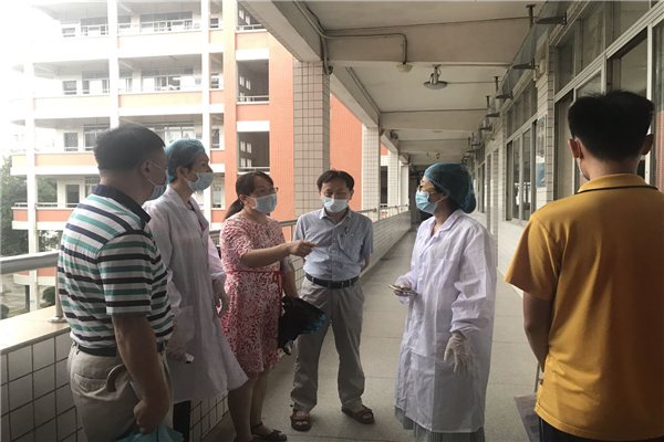 7月2-6日,为保障江门市高考的顺利举行,为江门学子创造安全的考场,市疾控中心的少数民族干部王立华同志前往学校指导考点开展应急演练工作,详细讲解现场需要做好的安全工作,如考生健康状况监测、体温监测点和备用隔离考场设置、防疫用品、考点消毒等方面的规范操作,并对现场演练过程中暴露出应急处置流程不细等问题提出整改意见,尽可能的完善考场的安全保障工作。