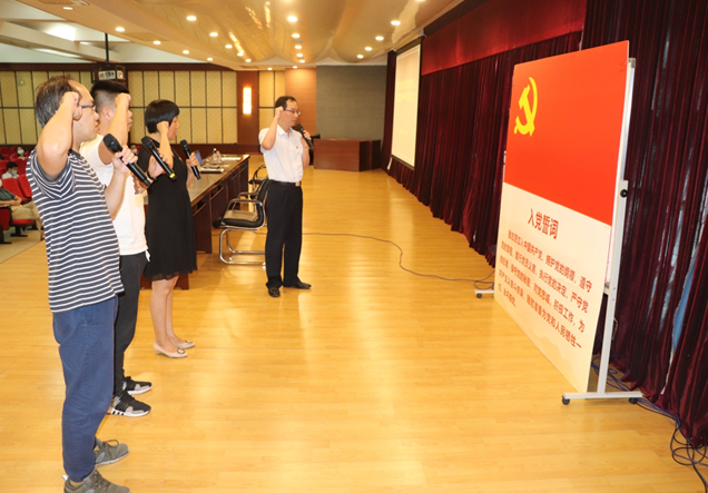 会议最后,杨立峰书记带领新入党的三名同志面向党旗进行入党宣誓。
