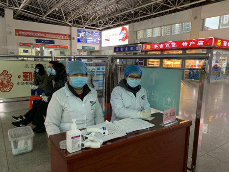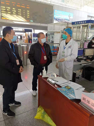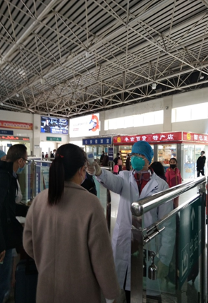 与此同时,在另一边一线打“防御战”的,还有在江门城轨站和汽车总站做排查的号手们。从大年初一开始到年初九,号手们以三个班次轮值的方式到车站排查疫情。从清晨6点的第一班车到晚上10点40分的最后一班车,他们为每一批到站的乘客测量体温,对重点人群和发热的进站人员进行备案登记,做好日后追踪工作,以达到早发现,早阻断的目的。