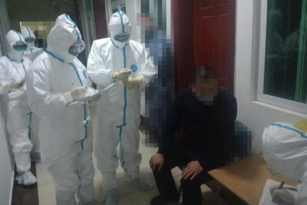 图1、号长张海鹏和号手袁嫣昊参加密切接触者调查工作