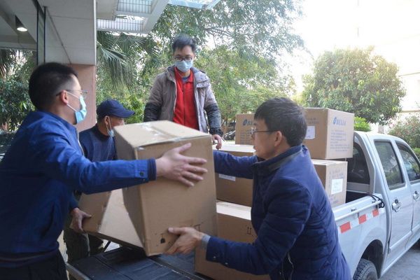 为了保障一线抗疫工作人员的口罩等防护物资能再快一点、再准确一点到位和发放,副号长陈光强和号手李玉萍、谭钧龙主动请缨到后勤保障组去,负责协助管理全市应急物资和捐赠物资,他们忘记身上的疲惫,一遍又一遍的清点出入库,协助搬运。