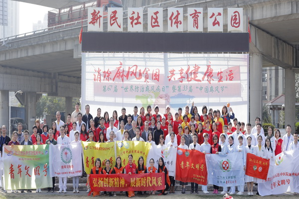 为深入推进中心青年文明号创建工作,中心结合1月15日“世界防治麻风病日”宣传活动邀请市中心医院、市五邑中医院、市人民医院、市第三人民医院和市妇幼保健院等青年文明号集体到现场共同开展互学互访交流活动。中心副主任、党委委员文美贞、市卫生健康局疾控科科长梁长培等领导出席活动。