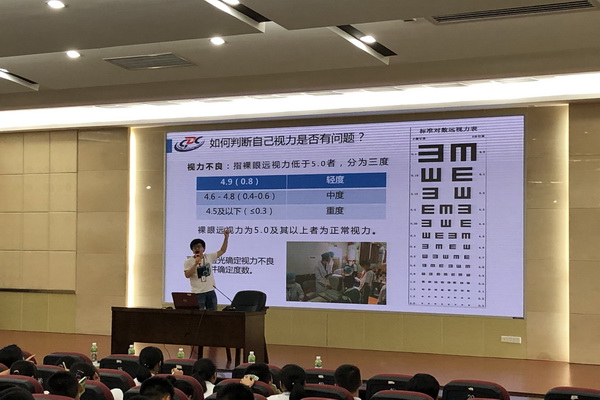 2019年6月6日是第24个“全国爱眼日”,今年全国爱眼日的主题是“共同呵护好孩子的眼睛,让他们拥有一个光明的未来”。为迎接爱眼日的到来,响应国家对青少年近视防控的号召,江门市蓬江区卫生健康局主办“江门市2019‘全国爱眼日’主题活动暨儿童青少年预防近视主题宣传活动”,该活动在江门市实验中学正式启动,活动聘请了市疾控中心学校卫生公卫医师吴桦轩及相关技术人员,通过生动的知识专题讲座,派发近视防控宣教小册子和现场指导学生健康用眼等方法,引导学生形成良好的用眼护眼方式。下一阶段,市疾控中心将针对儿童青少年近视开展更多有针对性干预活动及措施。