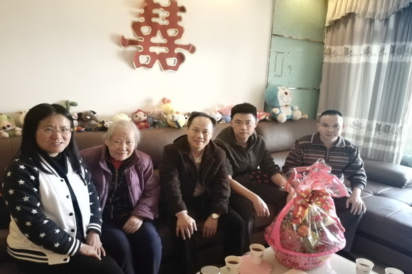 中心农工党党员一行来到老党员吴韵贞家中,了解到吴医生去年因病住院,由于年迈,行动不便,区博文主任鼓励她克服困难,坚定信心,多出外走走,活动身体,争取早日康复,区博文主任代表支部全体成员给她拜早年,希望她保重身体,健康长寿。