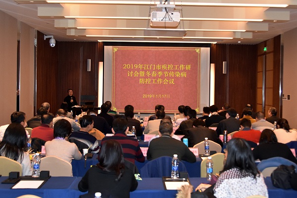 江门市卫生健康局疾控科梁长培科长高度肯定各市、区疾控中心的工作成绩,认为各级疾控中心有组织力、执行力,高效精干,构建强有力的防控工作格局。他寄望2019年全市疾控工作继续向前迈进,为建设健康江门助力。他强调,一是强化意识,守土有责,推动全民健康;二是建立机制,作出特色;三是联防联控,做出成效。