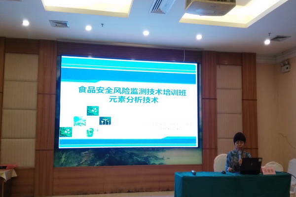 图1、市疾控理化检验科科长汤建春在培训班上授课