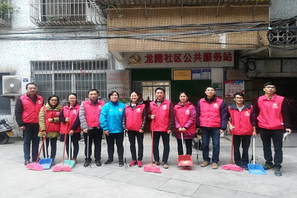 图2、中心党员义工到龙腾社区开展环境清洁、文明劝导及宣传科普等义工活动,为巩固创文成果贡献力量