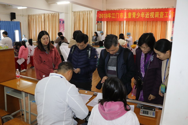 为贯彻落实习近平总书记关于做好儿童青少年近视防控工作的重要指示精神,深刻认识儿童青少年的视力健康事关国家和民族未来,切实加强新时代儿童青少年近视防控工作,我市于12月3号至12号开展了2018年江门市儿童青少年近视现场调查工作,我中心经过充分的组织准备和现场协调、质量控制,在市卫计局、教育局和相关医疗机构的支持配合下,顺利完成了这次调查工作。