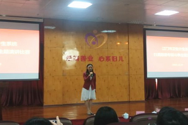 本次演讲比赛以扫黑除恶专项斗争为主题,在活动前,中心领导要求全力做好比赛准备工作,发动各科室收集演讲素材,高质量撰写好演讲稿,并在青年职工中优选精英参加比赛,通过实战来锻炼人才。经过综合考虑,袁嫣昊同志系我中心高学历人才,除了专业技术过硬之外,语言表达能力强,有过硬的上台心理素质,中心决定派出该同志参赛。从接到通知到上台比赛,只有不到一周时间,但袁嫣昊同志依然顶着压力,在科室的大力支持下,熟背演讲稿,演讲内容紧扣主题。她向大家讲述了我中心艾防人看不见硝烟的隐形战争——与病魔艾滋病作战,对于抗艾卫士来讲,扫黑除恶,要铲除的,就是这些隐形的恶魔!作为抗艾卫士,我们从未松懈与艾滋病魔的斗争,驱“魔”路上经历的事情,艾防人数都数不清……通过不懈的努力,江门市艾滋病疫情增长态势得到了遏制,中心艾艾滋病预防控制科也因此先后获得全国艾滋病防治先进集体、广东省工人先锋岗、省级青年文明号、江门市巾帼文明岗等殊荣。
