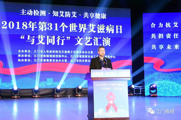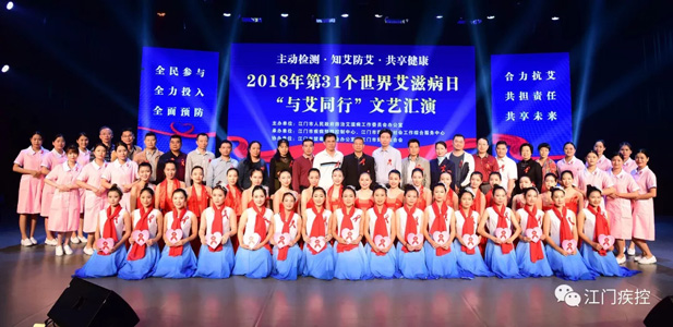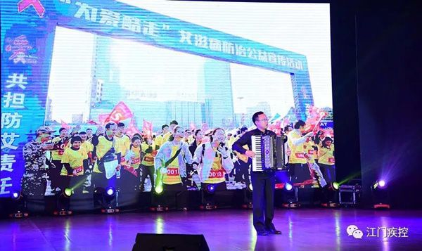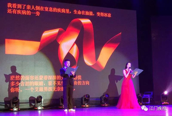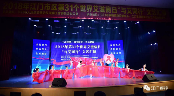 11月30日下午,由江门市人民政府防治艾滋病工作委员会办公室主办、江门市疾病预防控制中心及江门市理想家社会工作综合服务中心承办的“与艾同行”文艺汇演伴随着飘扬的红丝带在市工人文化宫徐徐拉开序幕。