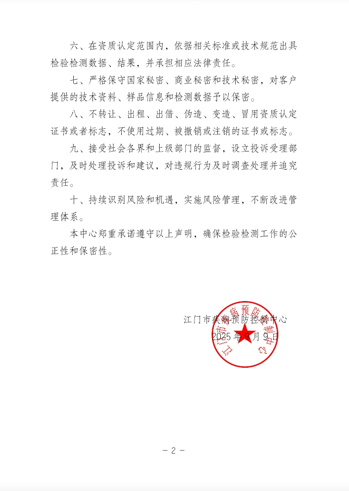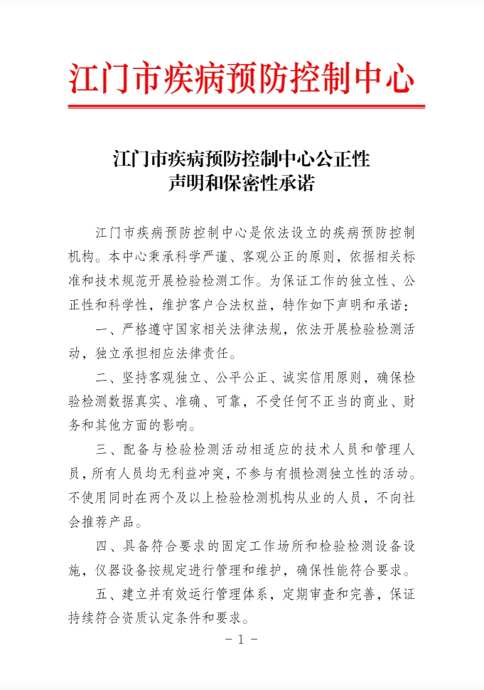 关于《江门市疾病预防控制中心公正性声明和保密性承诺》的公示