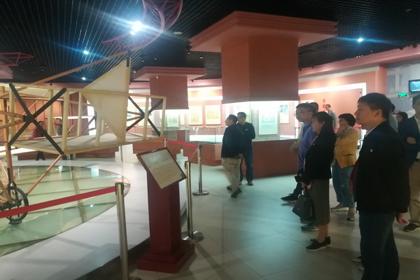 图2、党员在参观冯如制造的中国第一架飞机