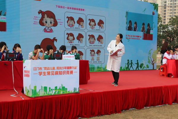 2020年1月3日下午,由市卫生健康局、市教育局联合主办,市疾病预防控制中心、市理想家社会工作综合服务中心承办的“灵动儿童、阳光少年健康行动” ——学生常见病防控知识竞赛在江门市第一职业高级中学内隆重举行。市教育局刘元副局长、市卫生健康局黄伟忠副局长、梁长培科长等领导出席了本次活动。市培英高中、新会华侨中学等来自蓬江区、新会会两区共12所学生常见病监测学校近50名学生代表现场进行了激烈的角逐,800多名师生一起观摩了本次竞赛。