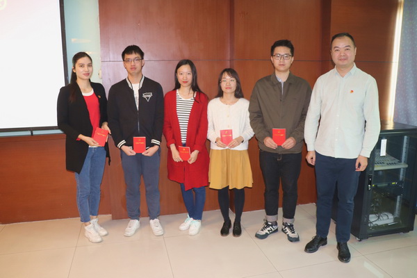 2019年12月23日上午,中心团支部召开2019年度专题组织生活会,全体团员到会参加。本次会议分别进行了超龄团员离团仪式、2019年度团员民主评议、团支部书记述职评议和推优入党等事项。团支部书记谢长宁主持会议。