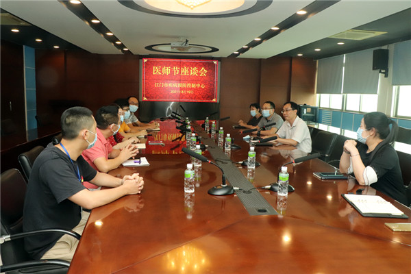 2021年8月19日是第四个中国医师节,为进一步弘扬公卫医师守护人民身体健康与生命安全的初心和使命,江门市疾控中心召开医师节座谈会,中心领导班子与6名支援广州、东莞疫情防控流调工作的公卫医师代表参加座谈,中心党委书记、主任杨立峰主持会议。